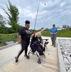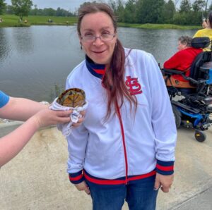 Our annual Fishing Derby with Community Living was held on Busch Wildlife Lake #15. Chairman Fred McGinley and a good number of volunteers held our annual Fishing Derby for 22 guests from Community Living. Lots of excitement when fish (and turtles) were caught. Prizes were awarded and lunch was served right before the rains came.