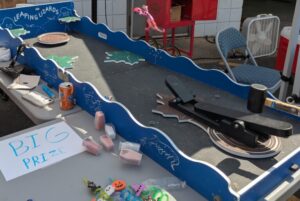 A few brave children tested their endurance on an inflatable obstacle course and reactive forces by launching leaping lizards. Young participants could practice their aiming skills by throwing Velcro hammers at a large target.