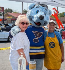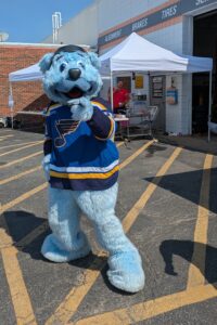 After all those activities, all “fueled their engines” with free bratwursts and hot dogs, grilled and served by the caterers from the St. Charles Optimist Club. And if you worried about gaining weight after consuming way too many calorie-rich foods, the St. Louis Blues’ mascot “Louie”  helped to shake your extra pounds off by engaging in his energizing dance. Lastly, you could cool down by drinking chilled water, Gatorade, a variety of sodas, or a cone of flavored shaved ice.