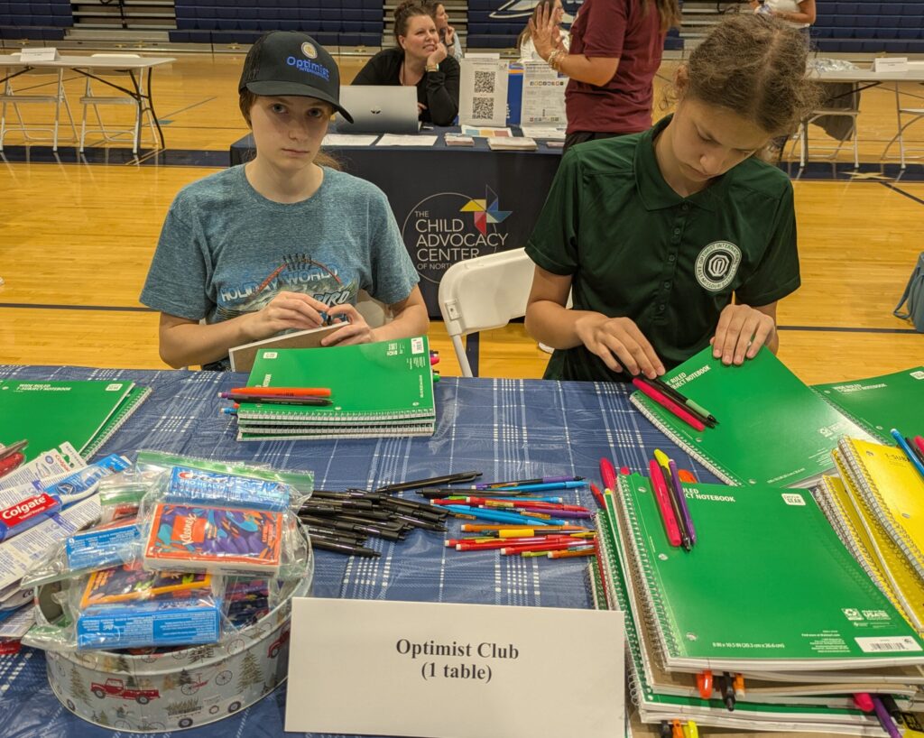 The Optimist Club of St.Charles table was a busy place where we had a variety of free school supplies (notebooks, mechanical and color pencils, markers, highlighters, and pens) as well as hygienic products (packs of tissue paper, toothpaste, and toothbrushes).